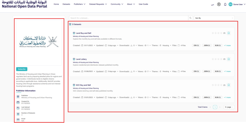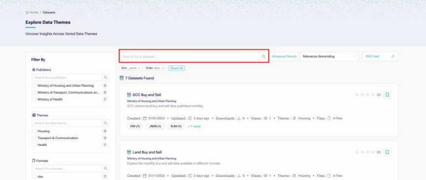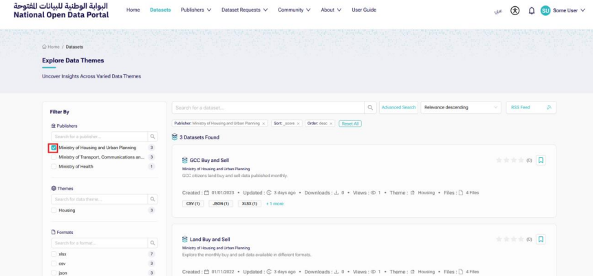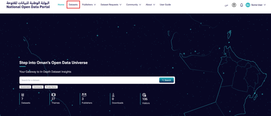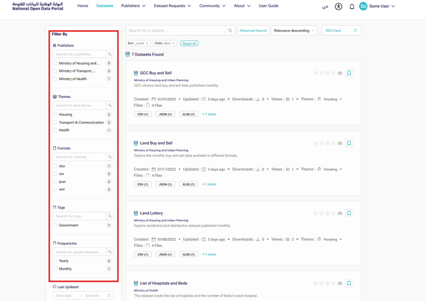 The Datasets section is the core of the portal. It allows you to search, filter, view, and download open datasets published by various government entities. Click Datasets on the top navigation bar.
